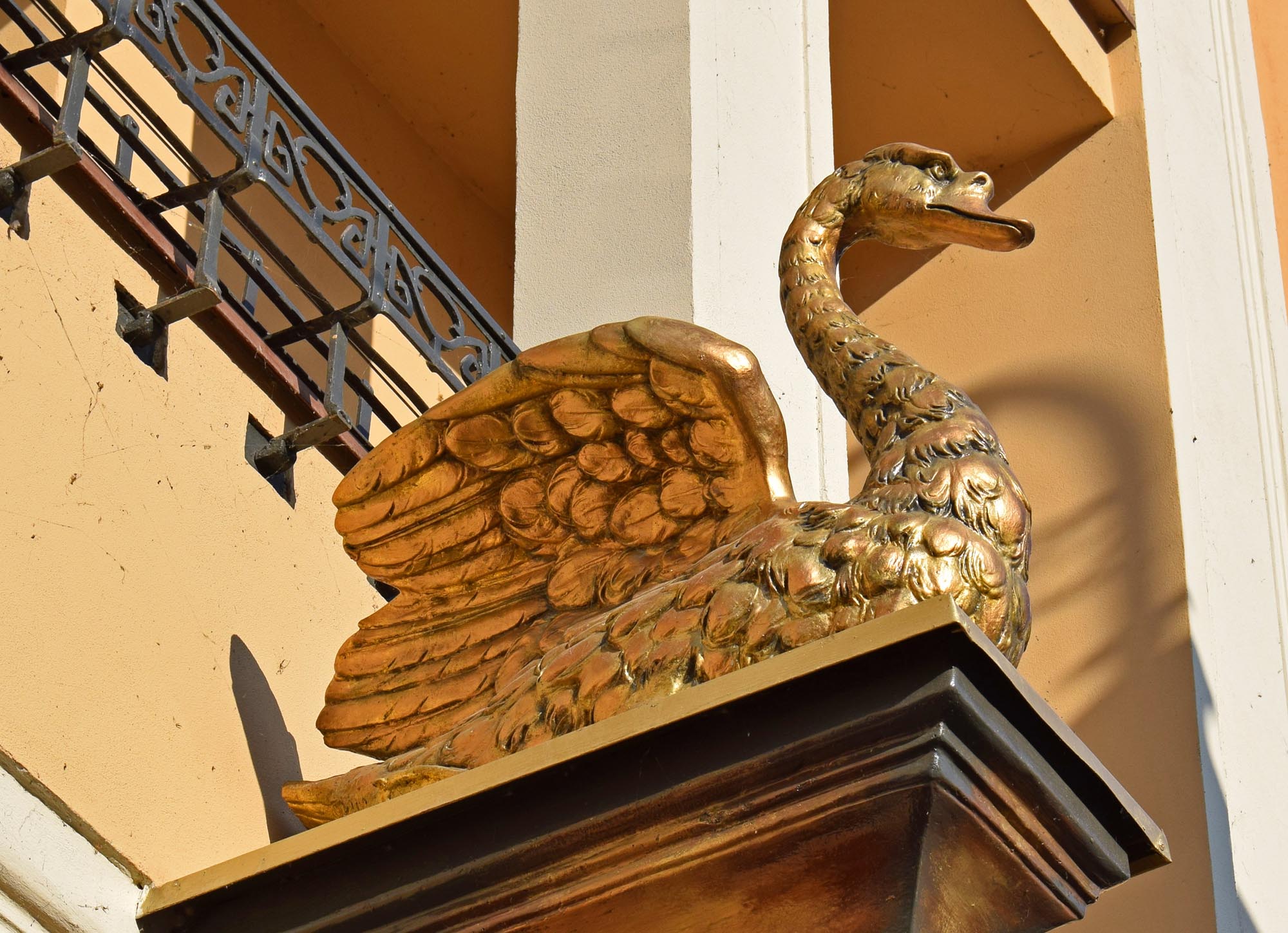 Ciekawostka: Nie zachował się ani jeden wizerunek Józefa Święcickiego. Natomiast w dekoracji fasady „Hotelu pod Orłem” odnajdujemy, pojedynczą, portretową maskę, w której przez długie lata, zgodnie z sugestią pewnego historyka sztuki, dopatrywano się wizerunku projektanta hotelu. Dziś, kiedy wiadomo, jak wyglądał Józef Święcicki, pytanie, kogo wyobraża rzeczona maska, wciąż pozostaje bez odpowiedzi. Jednak poszukiwacze wizerunku Święcickiego znaleźli kolejną maskę, która aktualnie jest brana za twarz architekta. Znajduje się ona na kamienicy przy ul. Gdańskiej 64.