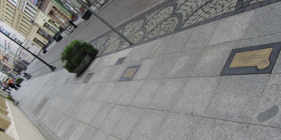 Wracamy znów na ulicę Długą, skręcamy w prawo i udajemy się w kierunku skrzyżowania z ulicą Jana Kazimierza. Na wysokości dawnej siedziby władz Bydgoszczy, obecnie Hotel Ratuszowy, znajdującej się po lewej stronie, warto skierować wzrok w dół. Pod naszymi stopami znajdują się bowiem Bydgoskie Autografy, tj. odwzorowane podpisy osób, które w szczególny sposób zasłużyły się dla miasta. Swoje tablice mają tu m.in. Zbigniew Boniek, Irena Santor czy Jan Kulczyk. Przyglądając się kolejnym autografom docieramy do skrzyżowania z ulicą Jana Kazimierza. Ustawiono tam pomarańczowy stary tramwaj z 1955 r., obecnie pełniący funkcję sezonowego punktu informacji turystycznej. Trudno dziś uwierzyć, że dawniej ulicą Długą regularnie kursowały tramwaje na dwóch liniach: „czerwonej” i „zielonej”. Na południowym krańcu ul. Jana Kazimierza znajduje się głaz upamiętniający bydgoskich Żydów (28). Głaz znajduje się dokładnie w miejscu gdzie przed wojną wznosiła się monumentalna synagoga z 1882 r. (proj. Albert Muttray), rozebrana przez nazistów w 1939 r.