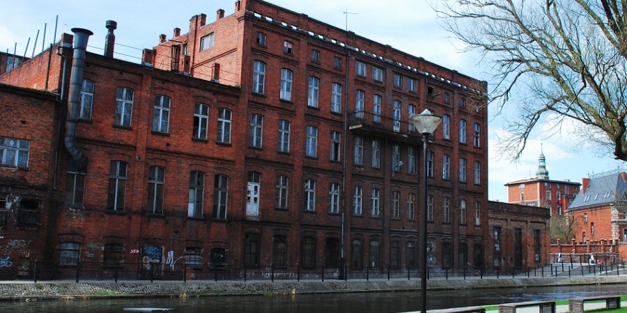Idziemy w prawo wzdłuż potężnej budowli. Przed nami, po lewej, dawny ceglany młyn (1861 r.), później zamieniony na spichlerz– noszący miano „czerwony spichrz”(10) (obecnie Galeria Sztuki NowoczesnejMuzeum Okręgowego). Tuż przed nim skręcamy w lewo i spacerową alejką wzdłuż międzywodzia kierujemy się do kładki. Przed mostkiem po prawej stronie znajduje się „biały spichrz” (11) zbożowy z XVIII w., zaadaptowany na potrzeby muzeum (Zbiory Archeologiczne), a dalej z kładki oglądamy dawną kaszarnię (12) z wodnym napędem turbinowym, przekształconą w elektrownię. Warto wspomnieć, że tu, w ówczesnych Młynach Królewskich, w 1846r. uruchomiono pierwszą w mieście maszynę parową. Tym samym bydgoski przemysł wszedł w „okres pary”. Ponownie znajdujemy się na ul. Marszałka Focha przy okazałym gmachu Opery Nova (wystawionym w miejscu spichlerzy, które spłonęły w latach 60.XX w.). Stąd ruszamy dalej na wschód, w prawo. Po lewej stronie mijamy ciąg kamienic. Na ich zapleczach, podobnie jak na innych śródmiejskich posesjach, funkcjonowały zakłady. Były tu wytwórnie obuwia i wody mineralnej oraz drukarnia (13). Przed nami wznosi się okazała, narożna kamienica (pl. Teatralny 6, na fasadzie nazwa „Savoy”) (14) o cechach klasycyzującego modernizmu, wybudowana w 1912 r. (projekt: Henry Gross z Berlina) dla Otto Pfefferkorna – fabrykanta mebli, który miał tu swój sklep firmowy. Jego słynny zakład, założony w 1884 r., przekształcony został w czynną do dziś Bydgoską Fabrykę Mebli. Teraz kierujemy się na wprost. Przechodzimy podcieniem kamienicy Pfefferkorna i znajdujemy się na początku ul. Jagiellońskiej, równoległej do rzeki Brdy. Zaraz po drugiej stronie ulicy, za dawnym kościołem sióstr klarysek, dostrzegamy, za szklaną elewacją centrum handlowego (15), atrapę klasycystycznej fasady upamiętniającą chlubne, dwuwiekowe tradycje drukarstwa, którego znaczącym centrum była Bydgoszcz. W 1806 r. Jan Adam Kimmel otrzymał przywilej królewski na prowadzenie drukarni i scedował go na pasierba Andrzeja Fryderyka Gruenauera. Tenże uruchomił drukarnię przy ul. Poznańskiej, którą w maju 1815 r. przeniósł do wybudowanego w tym celu domu z oficyną przy obecnej ul. Jagiellońskiej 1. W 1875 r. drukarnia Gruenauera otrzymała napęd parowy, który przyczynił się do jej dalszego rozwoju. Warto obejrzeć jeszcze doskonale zachowany zespół mieszkalno-fabryczny przy ul. Podwale 12. Budynek w formie czteroskrzydłowego obiektu z wewnętrznym podwórkiem powstał w latach 1871-1875 dla uruchomionej tu w 1849 r. fabryki mydła J.G. Böhlkego (16). Współcześnie do tradycji bydgoskich wytwórni mydła nawiązuje Muzeum Mydła i Historii Brudu z manufakturą przy ul. Długiej 13-17. W dziejach bydgoskiej industrializacji złotą kartą zapisała się rodzinna firma obuwnicza, założona w 1876 r. Rozrosła się ona z niewielkiego warsztatu obuwniczego, prowadzonego przez Wiktora Weynerowskiego z pomocą żony i dzieci, w przedsiębiorstwo, które jakością i poziomem produkcji w latach 30. XX w. zawzięcie konkurowało z czeską fabryką obuwia „Bata”. Około roku 1891 firmę „W. Weynerowski i syn Fabryka Obuwia” przejął syn Antoni, który już jako dwunastolatek pomagał ojcu wyrabiać buty. Ta, po pewnym czasie, ulokowana została w nieistniejących dziś budynkach przy ul. Św. Trójcy 34. Mijały lata i dobrze prosperująca fabryka potrzebowała dogodniejszej siedziby. Wówczas Weynerowscy nabyli rozległą parcelę u zbiegu ulic: Kościuszki i Chocimskiej (17). Następnie bydgoski architekt Paul Sellner przygotował projekt nowoczesnego budynku fabrycznego o dwóch kondygnacjach z poddaszem, wyposażony w zaplecze socjalne dla pracowników i przestronną windę towarową. W nowej siedzibie rozwój fabryki nabrał impetu. Zatrudnienie wzrosło do 300 osób. W 1929 r. przedsiębiorstwo przejęli synowie Antoniego – Henryk i Witold, którzy trzy lata później nadali rodzinnej firmie nazwę „Leo” Fabryka Obuwia S.A., upamiętniając tym samym brata Leona, poległego podczas I wojny światowej i matkę Leokadię (zm. 1927 r.). II wojna światowa położyła kres rodzinnemu przedsiębiorstwu. Po 1945r. upaństwowiona fabryka obuwia „Leo”, a następnie „Kobra”, funkcjonowała przy ul. Kościuszki 27 do 1992 r.